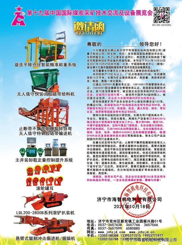 > 邀請(qǐng)函-第十九屆中國國際煤炭采礦技術(shù)交流及設(shè)備展覽會(huì)